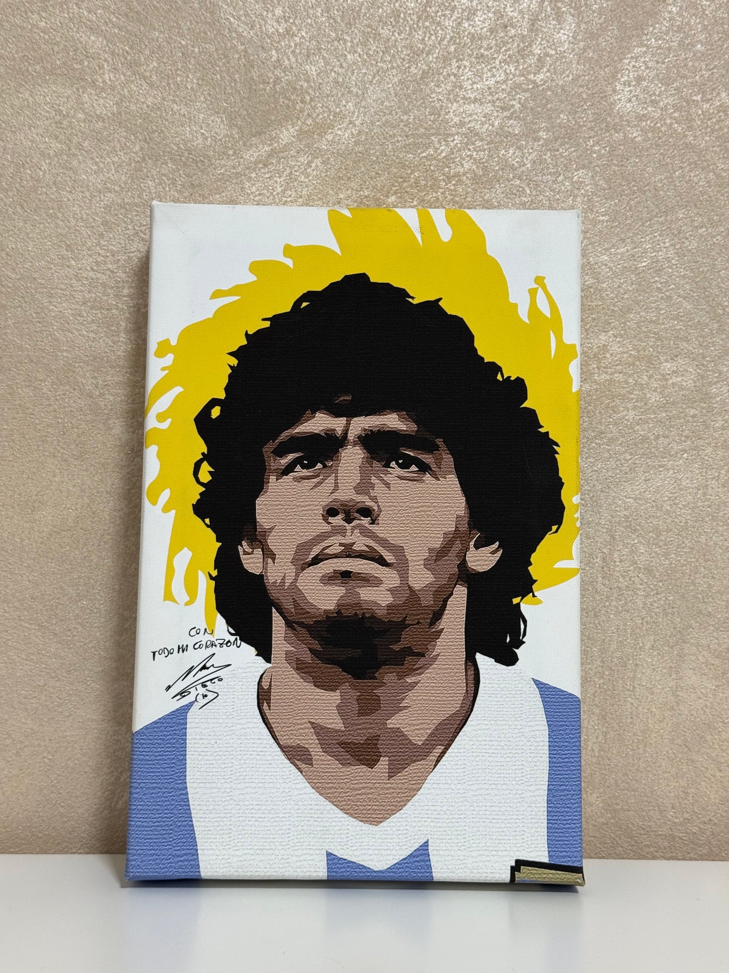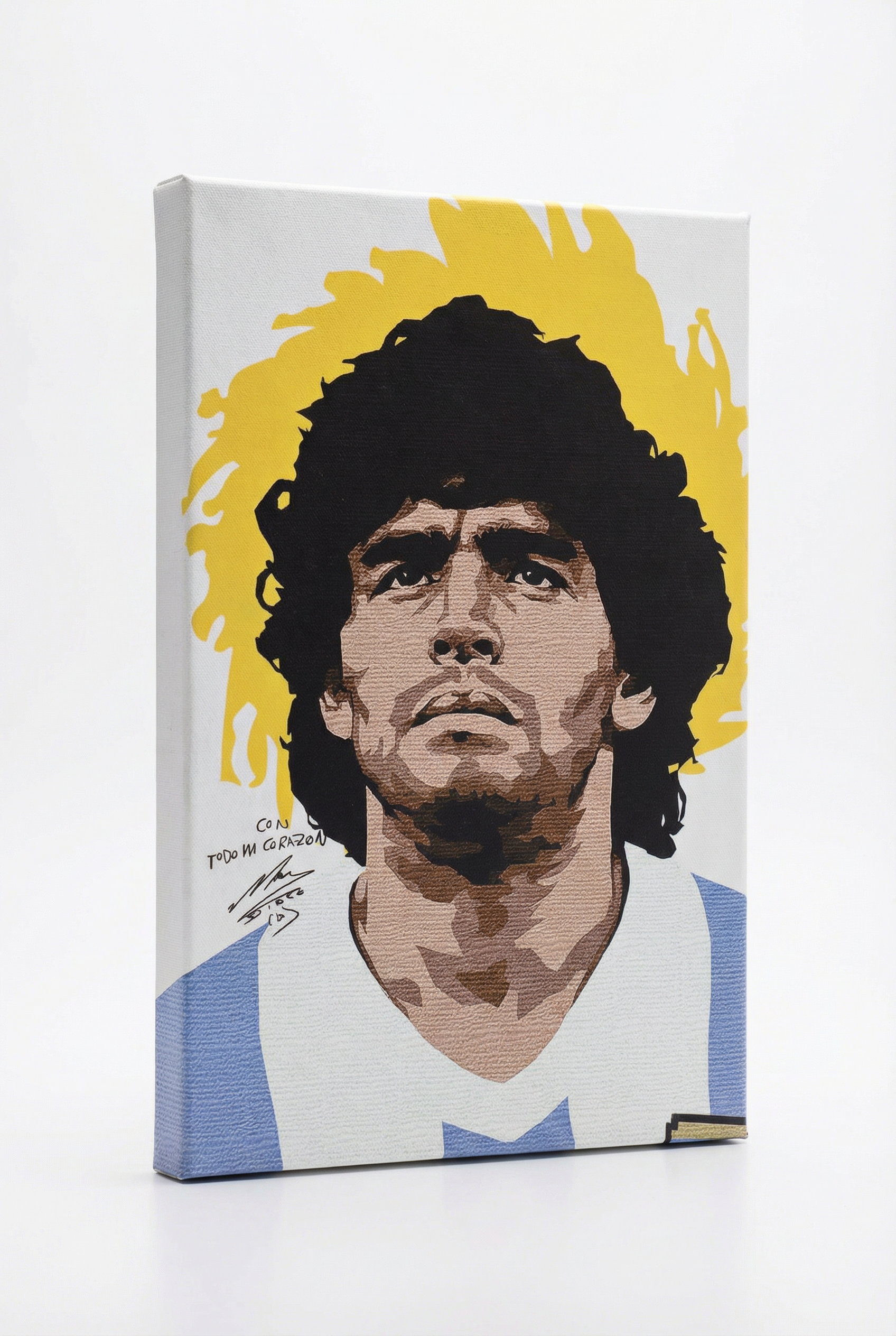 Quadro in tela ufficiale D10S dedicato a Diego Armando Maradona, realizzato con stampa ad alta definizione su tela premium. Un pezzo iconico che celebra la leggenda del calcio e aggiunge carattere e valore a qualsiasi ambiente.